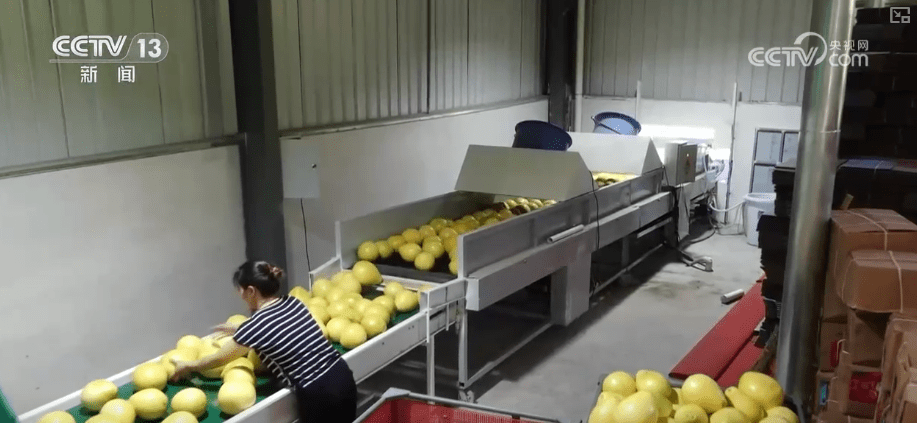 果农采摘忙,柚子加工企业也马力全开。正在位松口镇的梅县金柚财产园内,工人们正正在对收购上来的柚子进行无损糖度检测,一个个柚子通过出产线从动进行分类,按照分歧的糖度进行包拆发卖。